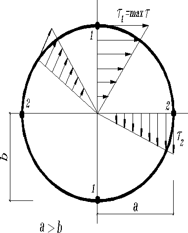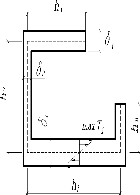 Следовательно (см. (14)) наибольшие касательные напряжения возникают вблизи точек контура, расположенных посредине длинной стороны участка с наибольшей толщиной стенки