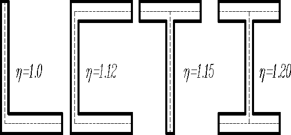 Изложенный способ определения , как отмечалось, является приближенным, поскольку не учитывается переменность толщины отдельных элементов профиля, повышение и внутренних углов и другие факторы. Заметим, что во избежании местных перенапряжений эти углы выполняются округленными.