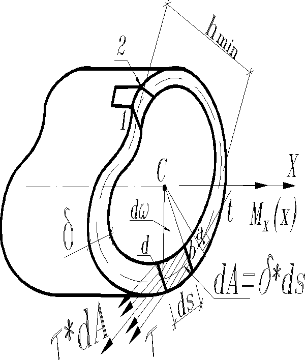 В виду незначительной толщины стенки принимается допущение о том, что напряжения по толщине распределяются равномерно и направлены по касательной к средней линии (гипотеза Р.Бредта).