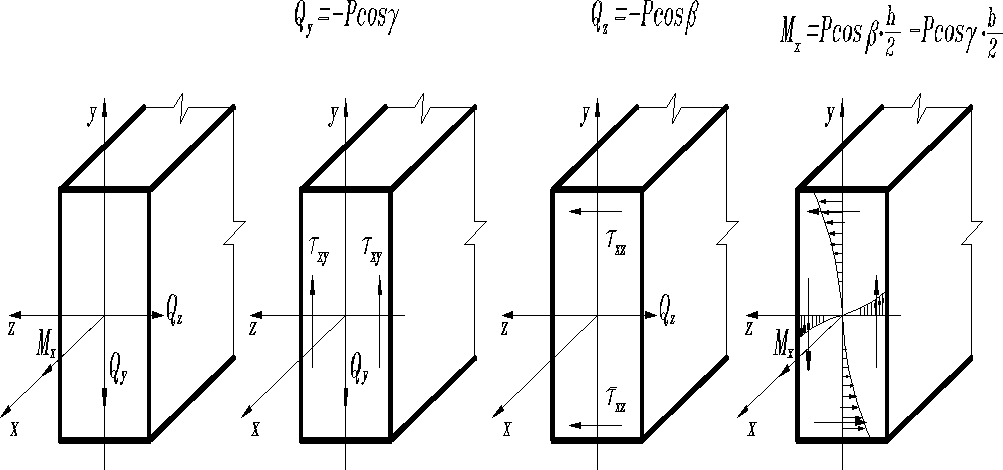 - вызывают в сечении нормальные напряжения, а - касательные напряжения.