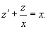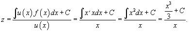 Выберем в качестве интегрирующего множителя функцию u(x) = x. Можно проверить, что после умножения на u(x) левая часть уравнения будет представлять собой производную произведения z(x)u(x):