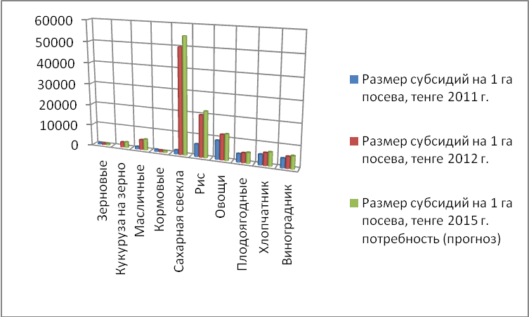 Стабильному развитию АПК способствовала эффективность оказываемой государственной поддержки развитию предпринимательства в отрасли сельского хозяйства. Если в 2002 г. на эти цели из республиканского бюджета было направлено 27,3 млрд. тенге, то к началу 2012г. - 77,9 млрд. тенге или больше в 2,8 раза, в том числе объем субсидий составил 21,5 млрд. тенге, кредитов - 26,2 млрд. тенге. В 2012 г. всего выделено 76,1 млрд. тенге, в том числе субсидий - 23 млрд. тенге, кредитов - 18,5 млрд. тенге. Также на развитие малого и среднего предпринимательства оказало влияние стабилизация социально-экономического положения в республике.