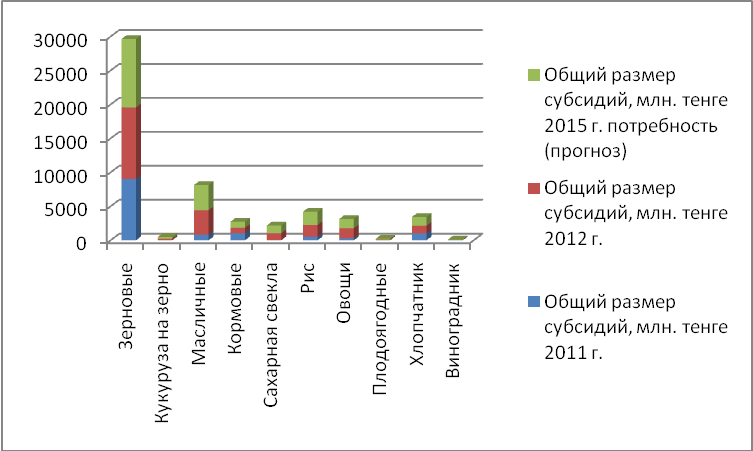 В целом на поддержку агропромышленного комплекса в 2010 г. выделено 127,3 млрд. тенге, в том числе субсидий - 39,4 млрд. тенге, кредитов - 45,4 млрд. тенге.