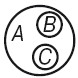 - Соподчинение. В отношении соподчинения (координации) находятся понятия, объемы которых исключают друг друга, но принадлежат некоторому более общему родовому понятию. Например, «ель» B, «береза» C принадлежат объему понятия «дерево» А. Они изображаются отдельными неперекрещивающимися кругами внутри одного общего круга. Это виды одного и того же рода.