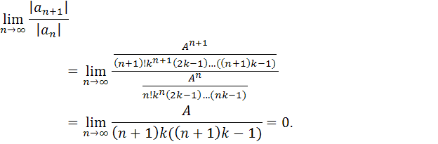 Значит ряд сходится, по признаку Вейерштрасса, ряд, стоящий в квадратных скобках сходится абсолютно и равномерно, и его сумма стремится к единице при . Отсюда имеем