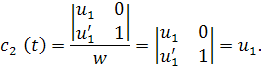 Этот определитель является определителем Вронского для системы, и так как он по условию равен 1, то можно применить правило Крамера для нахождения решения системы. В итоге получим