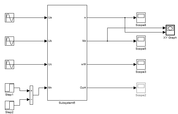 3.8 Исследование двухмассового стенда с асинхронным двигателем на модели в трехфазной системе координат 69