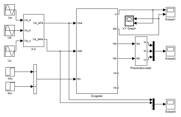 3.4 Исследование асинхронного двигателя на модели в двухфазной системе координат 50