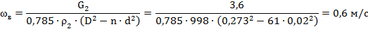 Межтрубное пространство. Рассчитаем коэффициент теплоотдачи для воды. Скорость воды в межтрубном пространстве.