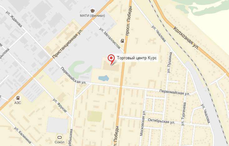 Месторасположение кафе - торгово-развлекательный центр «Курс», по адресу Проспект победы д. 63А.,