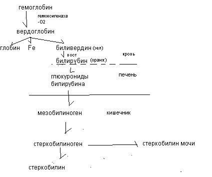 Распад гемоглобина осуществляется в процессе переваривания гемопротеидов в желудочнокишечном тракте и в тканях при распаде эритроцитов.