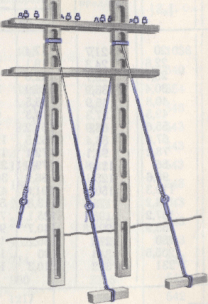 Опоры. Опоры воздушных линий связи должны обладать достаточной механической прочностью, сравнительно продолжительным сроком службы, быть относительно легкими, транспортабельными и экономичными. До последнего времени на воздушных линиях связи применялись опоры из деревянных столбов. Затем- начали широко применяться железобетонные опоры.