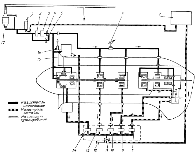 Измерение давления масла производится в трубопроводе подвода масла к четвертой и пятой опорам за отсечным клапаном (ОК) датчиком давления ИД-8.