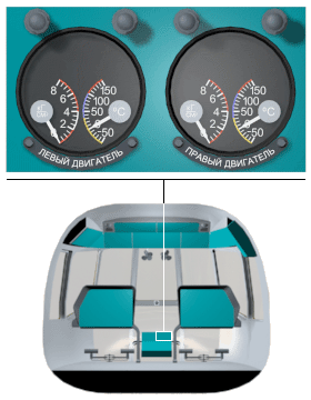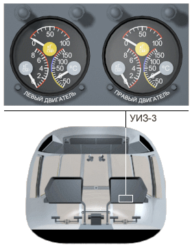 Для контроля давления и температуры масла на центральном пульте установлены указатели давления и температуры масла УИЗ-3 (Рис.19) левого и правого двигателей.