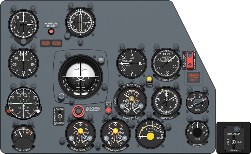 Следить за давлением и температурой масла в двигателе и главном редукторе. Давление масла должно составлять: