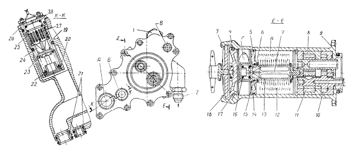 Действие манометров топлива и масла основано на изменении величины индуктивности катушек датчика с изменением давления топлива и масла, что, в свою очередь, ведет к изменению величины токов в рамках магнитоэлектрического логометра и, следовательно, - к перемещению стрелки прибора.