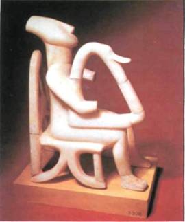 Кто были эти первобытные художники? По всей вероятности, колдуны, шаманы. Люди верили, что шаманы — как легендарный Орфей — обладают дарованной свыше способностью проникать в потусторонний (подсознательный) мир, впадая в транс, и, в отличие от простых смертных, вновь возвращаются из этого таинственного мира в цар ство живых. По-видимому, именно такого шамана певца изображает высеченная из мрамора фигурка, известная под названием «Арфист» (илл. 1). Этой статуэтке почти пять тысяч лет; для своего времени она необычайно сложна, даже изысканна, и была создана на редкость талантливым художником, сумевшим передать всю силу вдохновения певца. В доисторические времена шаман, обладающий уникальным свойством проникать в неизвестное и выражать это неизвестное посредством искусства, получал тем самым власть над таинственными силами, скрытыми в природе и в человеке. И по сей день художник остается в некотором смысле чародеем, поскольку его творчество способно воздействовать на нас и завораживать нас — что само по себе удивительно: ведь современный цивилизованный человек слишком ценит рацио нальное начало и не склонен от него отказываться.