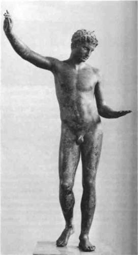13. Пракситель (?). Стоящий юноша. Найден в Эгейском море близ Марафона. Ок. 350—325 гг. до н. э. Бронза. Высота 129,5 см. Национальный Археологический музей, Афины