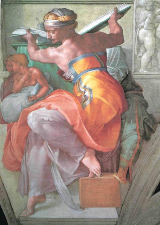 6. Микеланджело. Ливийская сивилла. Часть плафонной росписи. 1508—1512 гг. Фреска. Сикстинская капелла, Ватикан, Рим