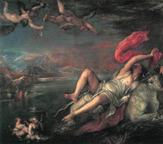 7. Тициан. Похищение Европы. 1559—1562 г. Холст, масло. 177,8 х 205 см. Музей Изабеллы Стюарт Гарднер, Бостон