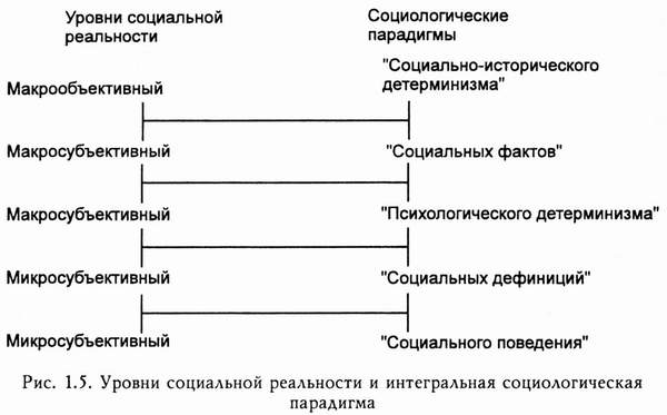 Значение этой модели в том, что она позволяет, во-первых, установить реальные взаимосвязи между различными уровнями социальной реальности (рис. 1.5), во-вторых, служит основанием классификации изучаемых явлений, в-третьих, требует применения соответствующей этим явлениям методики и техники .( Немировский В. Универсумная парадигма в российской социологии//Социология на пороге XXI века: Основные направления исследований/Под ред. С.И. Григорьева (Россия), Ж. Коэнен-Хуттера (Швейцария). 3-е изд., доп. и перераб. М., 1999. С. 84-87.)