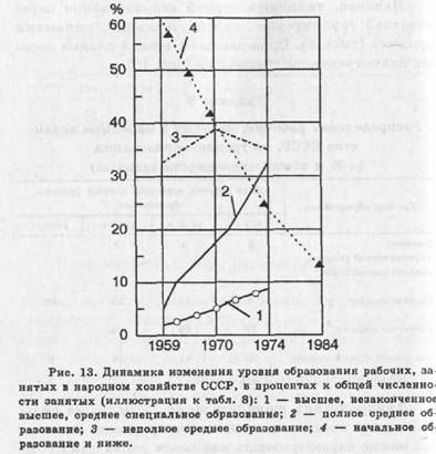 В книге "Человек и его работа" мы совершили именно такую ошнбку — приняли некоторые связи за прямые и при-Шли к заключению, что в простых видах труда высокое образование отрицательно коррелирует с продуктивностью. Впоследствии было установлено, что поскольку в 1964 г. подавляющее число молодых рабочих имело преимущественно более высокое образование в сравнении с большинством рабочих среднего и старшего возрастов, а те, в свою очередь, обладали боль шим опытом и стажем, тогда как первые — малым, то прямая связь между образованием и продуктивностью рабочего фактически была ложной. Она опосредована возрастом, стажем работы, уровнем производственного опыта. Все обнаружилось, как только из всей совокупности обследованных были выделены подгруппы разного стажа и возраста: в каждой возрастной подгруппе по правилам, описанным выше (введение контрольной переменной, в нашем случае — возраста), обнаружились усиленные прямые связи уровня образования и деловитости, продуктивности рабочих, т. е. чем выше образование, тем выше и производственные результаты.