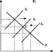 Рис . 8.10. Отрасли с возрастающими ( а ) и снижающимися ( б ) издержками неоднородных фирм