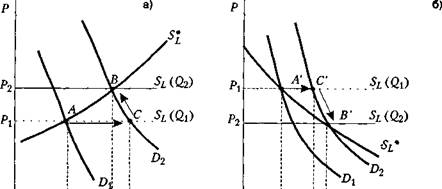 Это означает, что долгосрочная рыночная кривая предложения не S L ( Q ) и не S L ( Q 2 ), а скорее S *, т. е. место расположения множества точек, подобных точкам А и В.