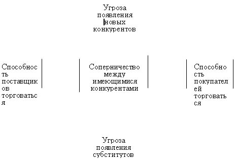 Известный специалист в области исследования конкуренции профессор М. Портер (кстати, нигде не давая самого определения этой категории) пишет: «В любой отрасли экономики — не важно, действует она только на внутреннем рынке или на внешнем тоже, суть конкуренции выражается пятью силами: 1) угрозой появления новых конкурентов; 2) угрозой появления товаров или услугзаменителей; 3) способностью поставщиков комплектующих изделий и т. д. торговаться; 4) способностью покупателей торговаться; 5) соперничеством уже имеющихся конкурентов между собой» (рис. 8.1). 1