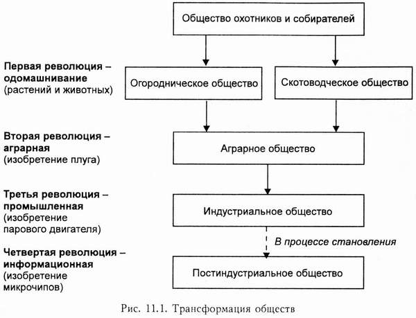 Эволюция обществ, представленная на рис. 11.1, поможет понять, как возникло наше собственное общество, какие характеристики присущи каждому типу общества.