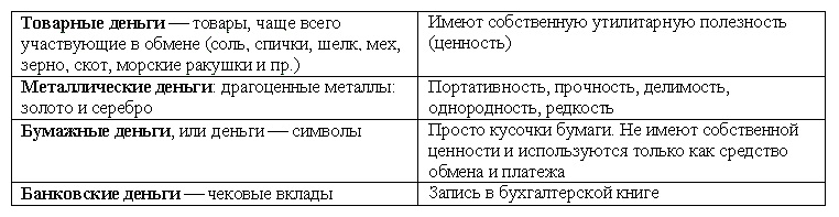 8.3. ТИПЫ ДЕНЕГ: ТОВАРНЫЕ, МЕТАЛЛИЧЕСКИЕ, БУМАЖНЫЕ, БАНКОВСКИЕ