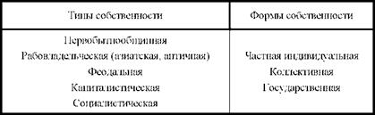 Типы, формы и виды собственности