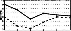 Рис . 12.1 а . Сужающийся дифференциал процентных ставок ( процент по 3- месячным депозитам )
