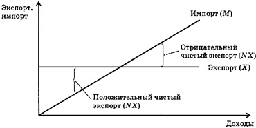 Как и другие составляющие совокупных расходов, экспорт и импорт действуют с мультипликационным эффектом. Так, экспорт оказывает множительное (мультиплицированное) воздействие на доход, подобно инвестициям и государственным расходам.