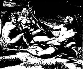 «Мастерская» Курбе помогает нам лучше понять другую картину, вызвавшую еще большее возму щение публики, а именно, «Завтрак на траве» Эдуарда Мане (1832—1883) (илл. 368), изображаю щую обнаженную натурщицу и двух господ в сюр туках. Мане первым постиг все значение Курбе, и его картина «Завтрак на траве», кроме всего про чего еще и дань уважения старшему собрату по искусству. Эта работа особенно оскорбила мораль своего времени тем, что художник расположил сидящих бок о бок изящно одетых господ и голую натурщицу на лоне природы, да еще дал картине ничего не говорящее название, не предполагающее в ней никакого «возвышенного» замысла. Вдобавок позы сидящих настолько формальны, что Мане, конечно, и не собирался изображать реальное со бытие. На самом деле расположение трех главных фигур он заимствовал с гравюры, выполненной по рисунку Рафаэля (см. илл. 367). Быть может, ис тинный смысл картины как раз и заключен в том, что она отрицает всякое следование правдоподобию, ведь представленная сцена не соответствует ни повседневной действительности, ни требованиям аллегории.