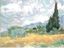 393— Винсент Ван Гог. «Пшеничное поле и кипарисы» 1889 г. Холст, масло. 72,4 х 91>4 см. Национальная галерея. Лондон. Воспроизводится с любезного разрешения Управления галереей