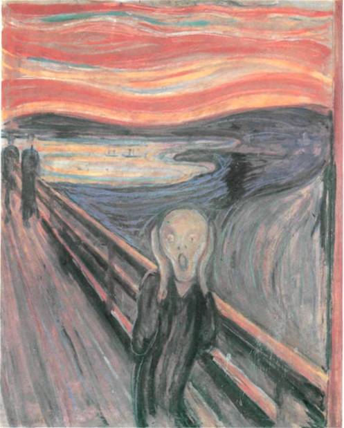 401. Эдвард Мунк. «Крик». 1893 г. Картон, темпера, казеин. 91,4 х 73,7 см. Национальная галерея. Осло