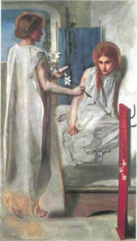 377. Данте Габриэль Россети. «Ессе Ancilla Domini » («Благовещенье»). 1849—50 г. Холст, масло. 72,4 х 41,9 см. Галерея Тейт. Лондон