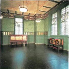 Моррис был проповедником простоты. По его мнению, архитектурные сооружения и мебель сле довало проектировать, сообразуясь с материалом и процессами обработки. Украшение поверхностей тоже должно быть плоскостным, а не стремиться к созданию иллюзорности. Интерьеры Морриса (илл. 378) преследовали одну цель — внушать ощущение спокойной интимности. Хотя сам Моррис утверждал, что является приверженцем средневековой традиции, он никогда не следовал ей слепо, а старался передать ее дух. Впервые после рококо Моррис создал новый стиль орнамента, что само по себе, уже немалая заслуга.