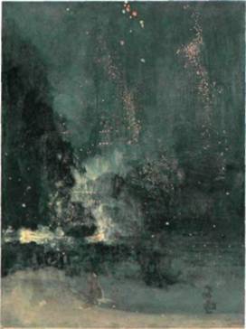 380. Джеймс Эббот Уистлер. «Ноктюрн в черном и золотом. Падающая ракета». Дерево, масло. Ок. 1874 г. 60,3 х 46,7 см. Институт искусств. Детройт. Дар Декстера М. Ферри мл.