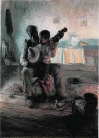 383. Генри 0. Таннер. «Урок игры на банджо». Ок. 1893 г. Холст, масло. 124,5 х 90,2 см. Музей Хэмптонского университета. Хэмптон. Виргиния