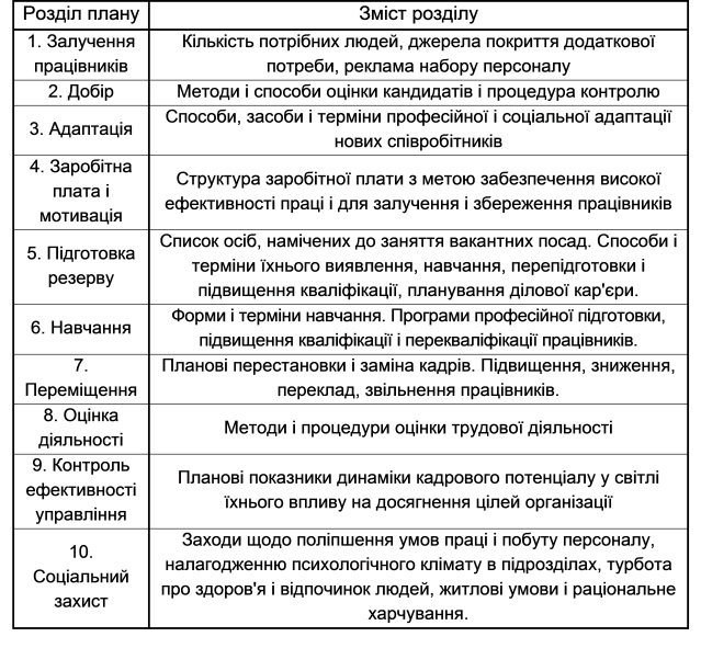 Склад плану роботи з персоналом