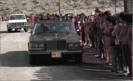 Бхагован Шри Рой - ниш , известный культовый деятель 80- х годов нашего веко , проезжает мимо рядов своих последователей , облаченных в оранжевые одежды ( Орегон , США ). Начиная с 60- х годов восточные течения приобрели особую привлекательность для представителей западного мира , занимающихся духовными исканиями .