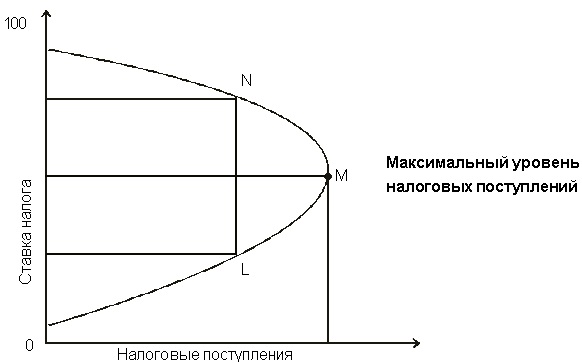 Из рис. 33.2 видно, что по мере роста налоговой ставки от 0 до 100% налоговые поступления достигнут своего максимума в точке М. На наш взгляд, рассуждение Лаффера представляет интерес и может явиться основой налоговой политики в России.