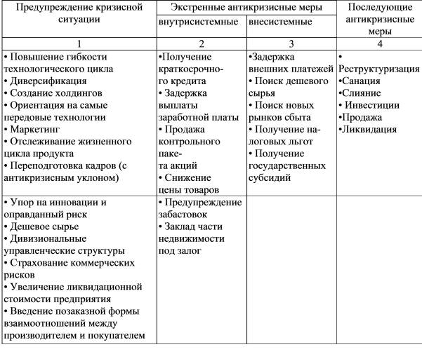 2. Экстренные меры — оперативные меры, направленные на быстрое восстановление платежеспособности в условиях уже возникшей кризисной ситуации.