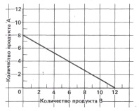 Если у потребителя имеется 48 рублей, при этом товар А стоит 6 рублей, а товар В 4 рубля, то бюджетное ограничение будет выглядеть, как на рис. 5.11. 48 : 6 = 8 шт. товара А, то товар В = 0; иначе 48 : 4 = 12 шт. товара В, товар А = 0. Соединив данные точки по прямой, получаем линию бюджетного ограничения. Наклон бюджетного ограничения показывает отношение цен соответствующих товаров (рис. 5.12).