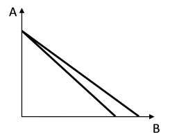 При уменьшении цены на товар В можно будет купить больше данного товара, а количество товара А будет постоянной величиной, поэтому линия бюджетного ограничения смещается, как