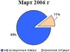 Так, в марте 2006 г. количество кризисных публикаций составило 11 % от общего числа упоминаний в прессе, в марте 2007 г. этот показатель оказался равен 7 %. (См. рис.2.1.). То же можно сказать и о месячной динамике количества публикаций на примере IV квартала 2006 г. и I квартала 2007 г. (см. рис.2.2.).