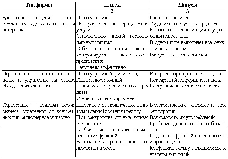 Организационно-правовые формы предпринимательской деятельности, их преимущества и недостатки