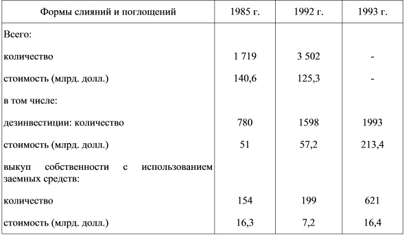 Таблица 9.4 Слияния и поглощения в экономике США (1985—1993 гг.)